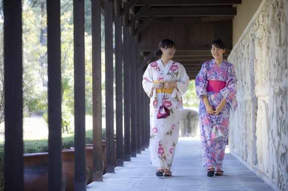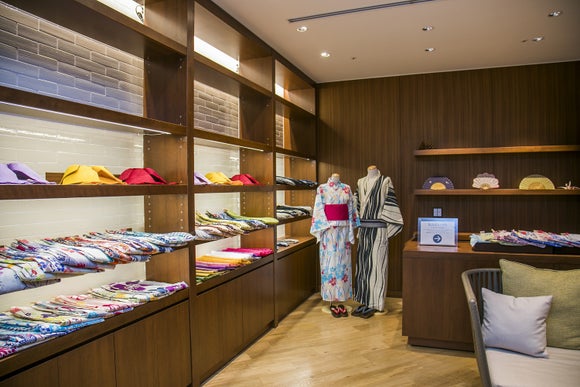 색 유카타 렌탈 코너에서는 풍부한 무늬 중에서 원하는 유카타를 선택하실 수 있습니다.