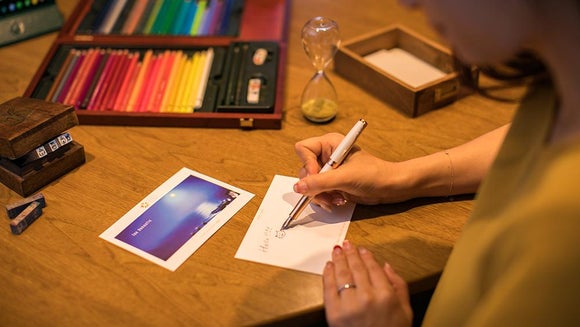 가게에 준비된 엽서를 사용하여 소중한 사람에게 편지를 써주세요.
