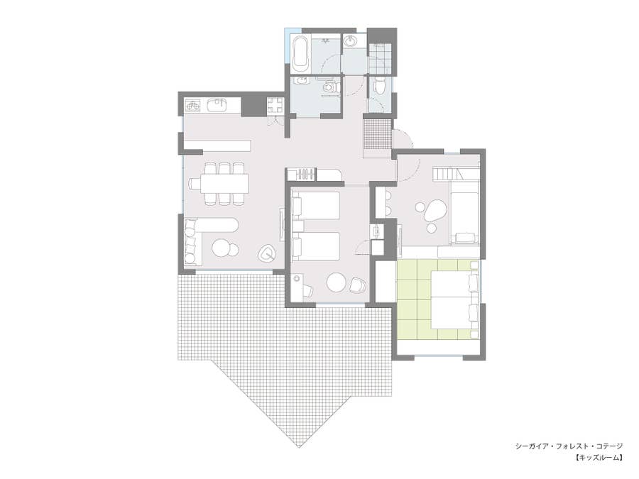 | 침대 | 1200×2000×580 2대(싱글) 1100×2000×300 1대(싱글) 1400×2000×300 1대(더블) 1100×2000(2층 침대) ※메조넷 타입이 아닙니다 |