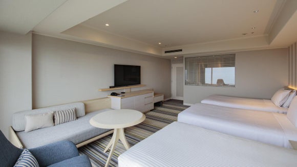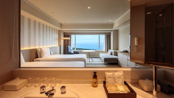 미야자키의 푸른 하늘과 푸른 바다를 이미지한 공간 디자인은 그대로, 비즈니스 데스크를 철거해, 데이 베드와 혼자 소파를 새롭게 배치하는 것으로, 보다 리조트 테이스트가 더해졌습니다.