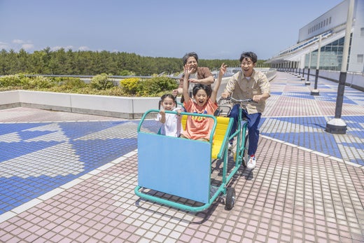 체크아웃 후에는, 호텔 3F의 「재미있는 자전거 파크」에. 2명 이상으로 탈 수 있는 자전거나 변형 자전거 등, 다양한 타입의 독특한 자전거를 타고, 할아버지♪