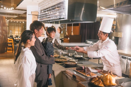 Garden Buffet "PINE TERRACE"에서 저녁 뷔페. 치킨 남만과 양상추 감기, 차가운 주스 등 미야자키 향토 요리는 물론 미야자키 쇠고기의 로스트 비프, 샐러드 바 등 풍부한 메뉴를 즐길 수 있습니다.