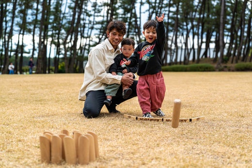 목제 핀을 노리고 던질 뿐! 아이로부터 어른까지 열중할 수 있는 「모르크」는, 가을의 아웃도어에 딱. 자연 속에서 가족의 유대를 깊게하는 게임 타임은 어떻습니까?